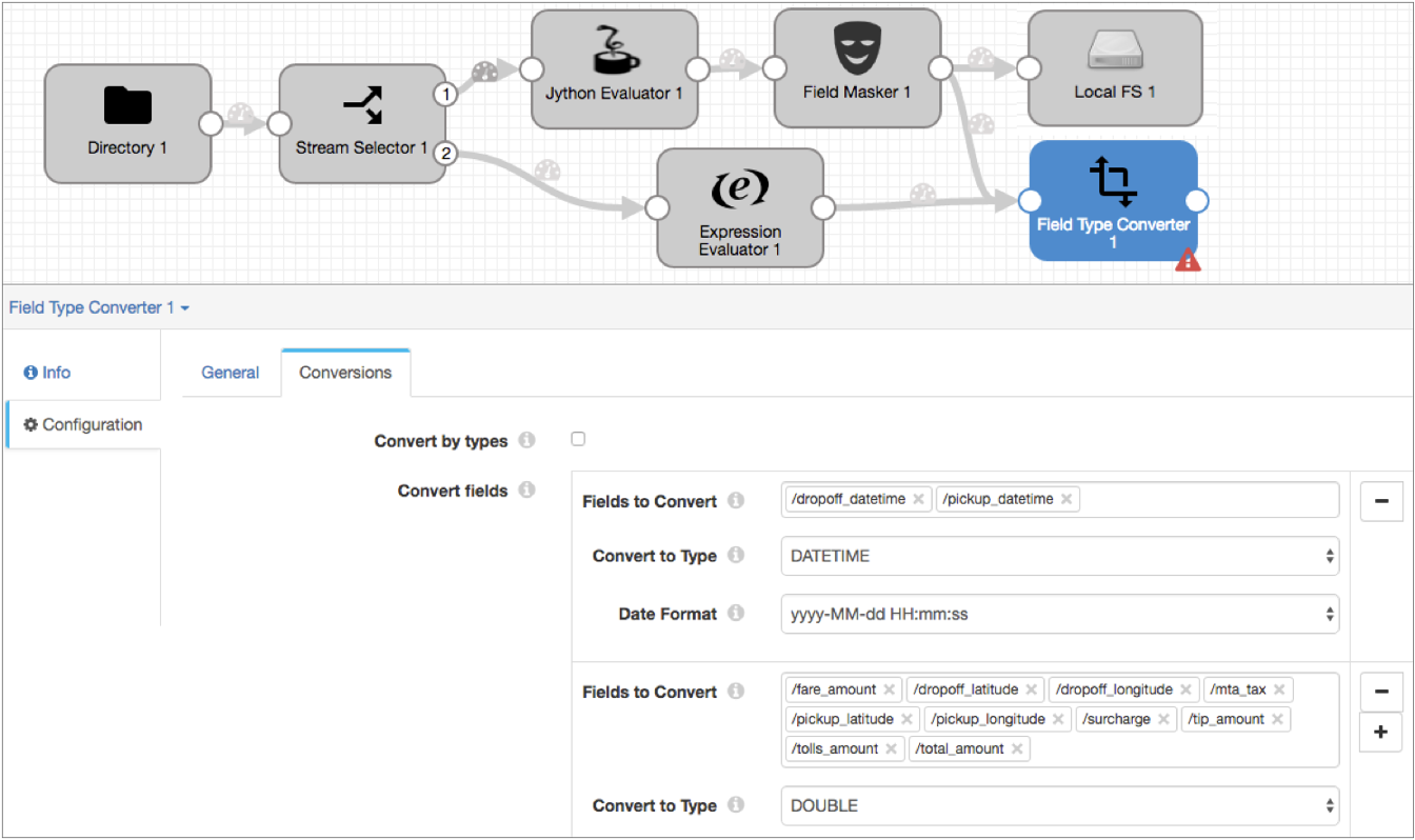 Since the sample data is read from a file, the fields are all String. Let's use a Field Type Converter to convert some data types.